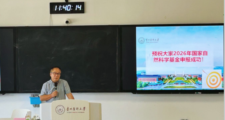 为全面总结2025年度国家自然科学基金申报工作,部署2026年申报任务,10月10日上午,药学院举行“药学学科2025年国基申报总结暨2026年动员会议”。副校长曾柱、科技处处长李一欣、贵州省卫生发展研究院副院长巩仔鹏出席会议并讲话,药学院执行院长李勇军主持会议,学院领导班子成员及全体教师参加会议。
